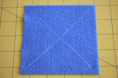 2. On the felt for the top part, mark an X in the middle. Leave 1/2" from all the corners. Cut on the lines.