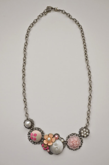 I love to combine beads, charms, buttons and other findings to create one of a kind unique items. This time was no exception, but I worked with a different color scheme outside of my norm. Pink and yellow.