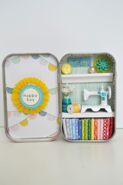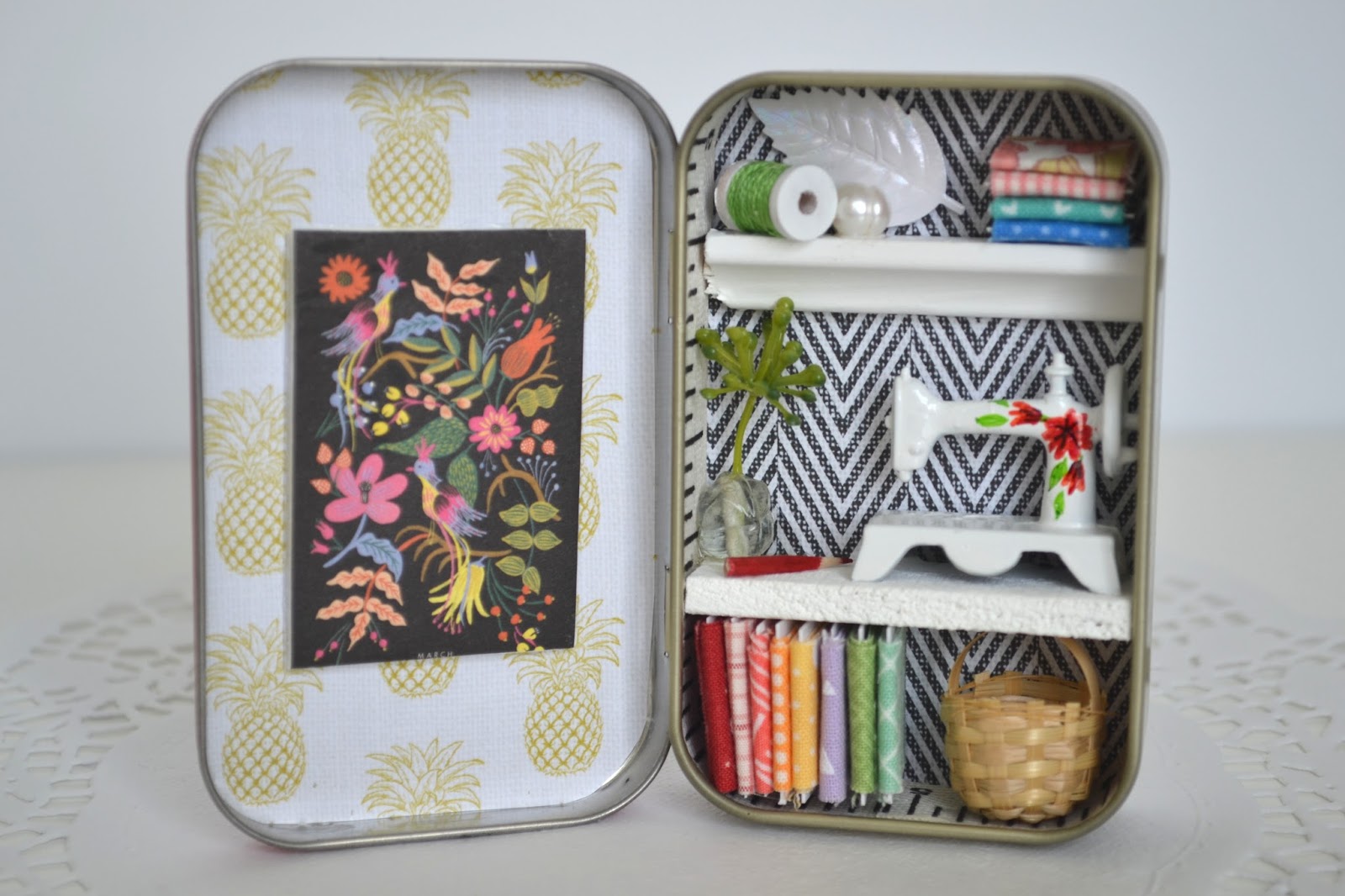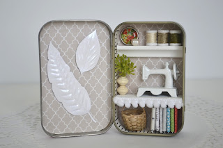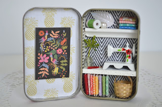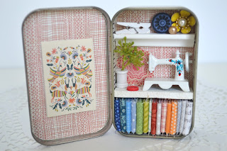 I created the sewing rooms inside of a famous mint tin which is only 2 3/8" x 3 3/4" big.