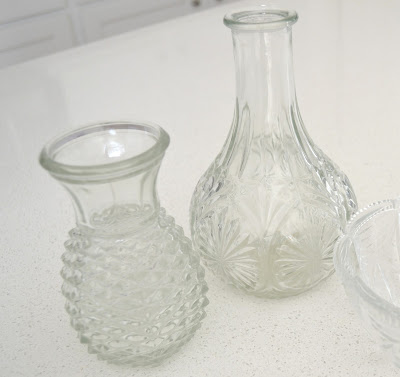 I found these glass vases at the thrift stores and I think they have very pretty and unique features. Hmm... I can't hardly wait to see how these will transform after I paint them. Here is the "Before" picture...