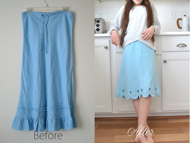 Refashion~ Long Skirt to Scalloped Edge Skirt